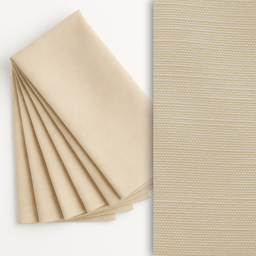 Elegáns, klasszikus hatású textilszalvéta, amely 50% pamut és 50% poliészter keverékéből készült, 253 g/m² súlyban. Anyaga erős, ugyanakkor kellemes tapintású, így mindennapi és ünnepi használatra egyaránt tökéletes. Könnyen kezelhető, mosógépben 60 °C-on mosható, hosszú élettartamát sok mosás után is megőrzi.